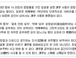 웬만하면 우리말로 풀어써야 하지만, 어쩔 수없이 한자어를 써야만 하는 경우가 있다. 한자를 완전히 털어버리려면 아마 수백 년은 걸릴 것이다. 그때까지는 어쩔 수 없이 한자어를 더불어 써야 한다. 아마도 국어사전의 90%가 한자어일 것이다.