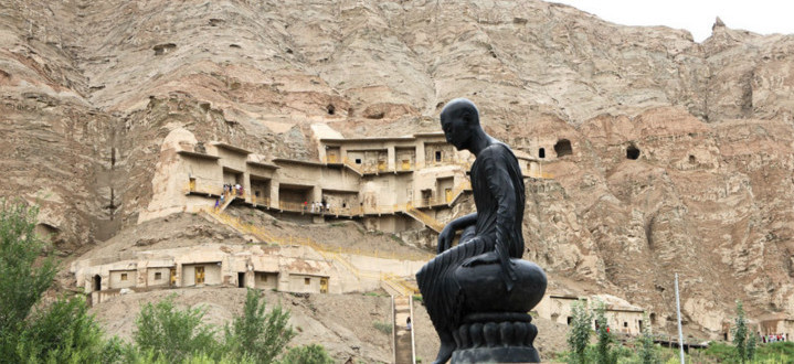 - 쿠마라 지바의 고향 쿠차, 지금의 신장 위구르 자치구에 세워진 동상